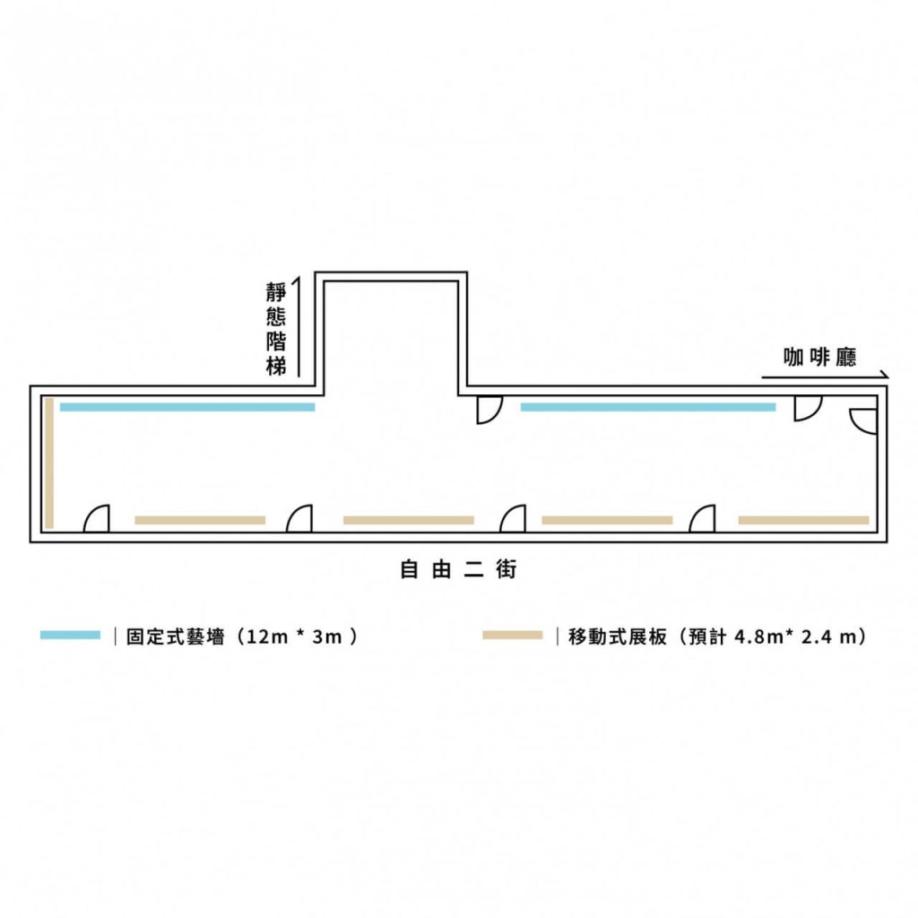 - 提供固定牆面和移動式牆面,自主設計展覽動線,營造貼合作品的展覽氛圍